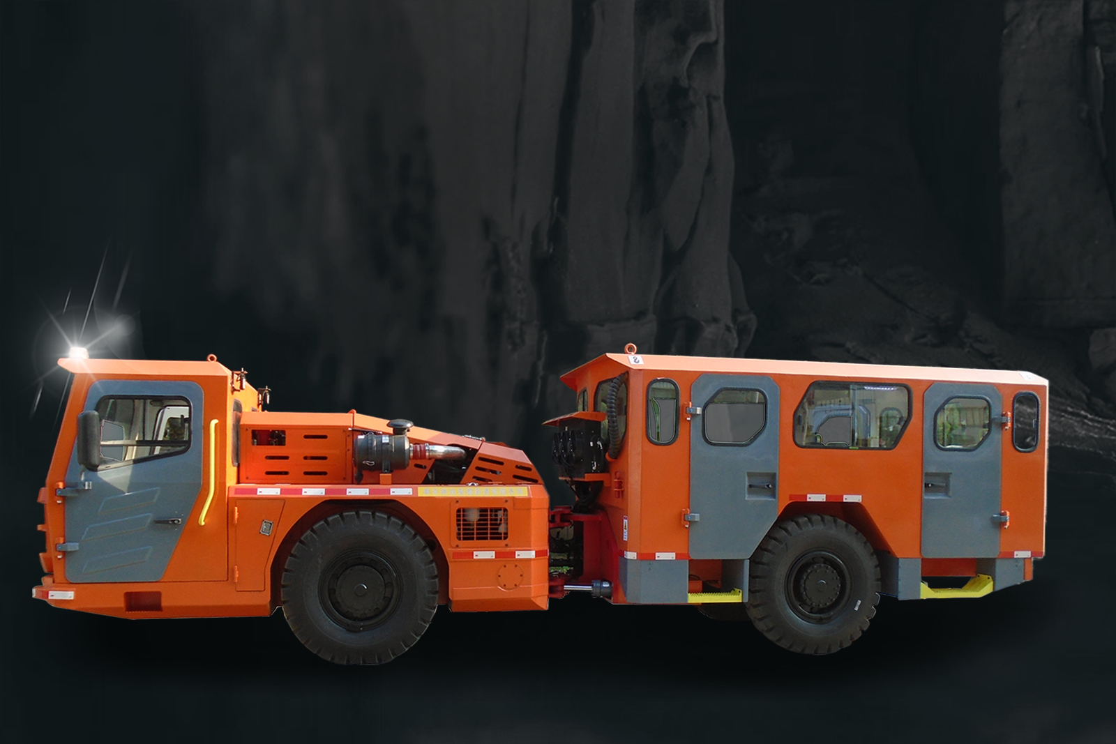 车辆配置Cummins4缸水冷发动机,4冲程直喷增压,配备燃油电子控制喷射系统。前桥、后桥均可选装液压减震悬架装置,操作更加舒适。配置弹簧制动、液压释放湿式制动器,更适合井下复杂恶劣的工作环境,保证安全性。