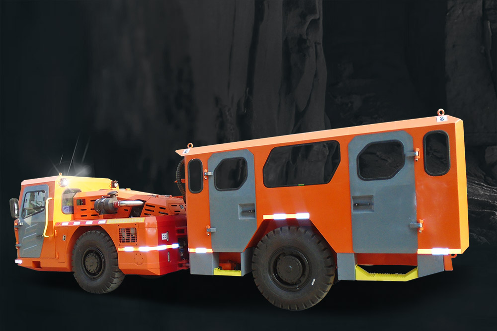 RU-16是一种专门为井下运输人员设计的无轨设备,额定载员16人。该无轨人车结构紧凑、安全可靠,特别适合于工作条件恶劣,作业现场狭窄、低矮以及泥泞的作业面。